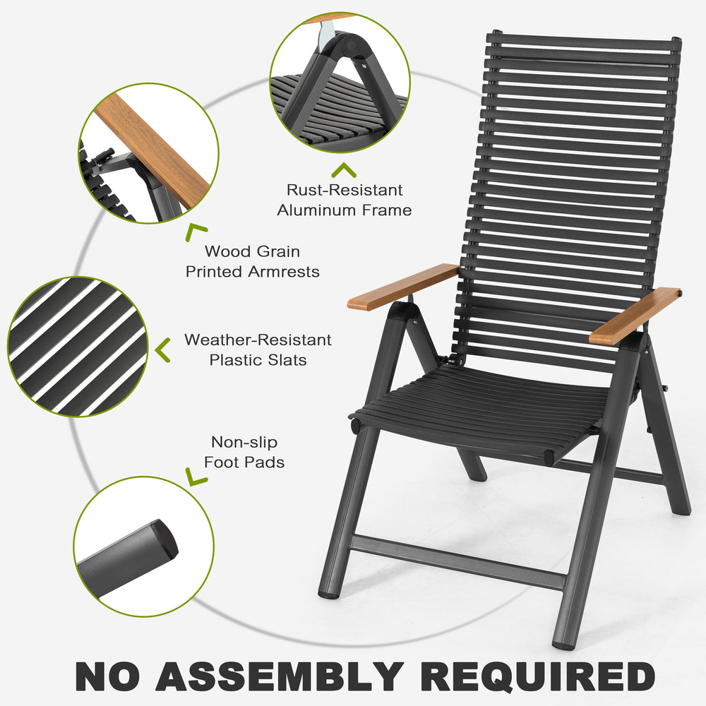 2-Piece Outdoor Folding Chairs, Rust-Resistant and Lightweight Aluminum Frame, Lawn Chairs Camping Chairs with Adjustable Backrests, Patio Portable Chairs for Deck, Porch, Yard, Deck, Dark Gray