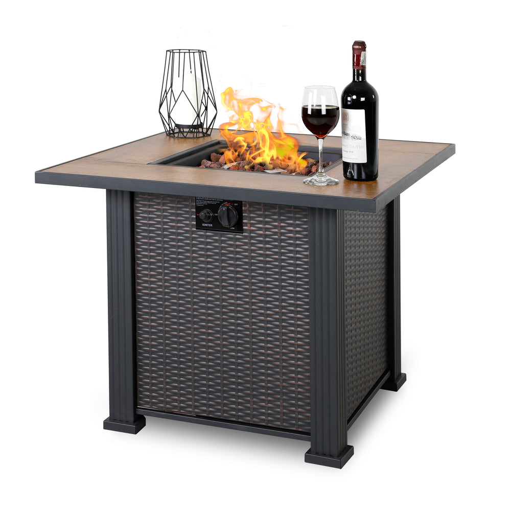 Durable Enough:?Made of solid wicker-like iron, this propane fire pit is built to last and can withstand the elements. The wood-like ceramic tabletop is also easy to clean, making maintenance a breeze.