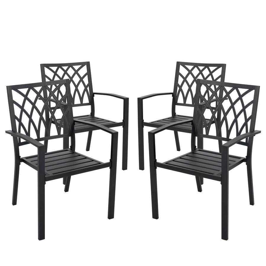 Outdoor 4-Piece Black Patio Chair Set, Powder-coated Iron, Lattice Pattern
