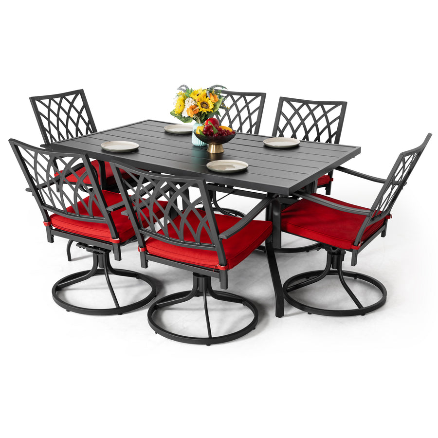 Slatted Tabletop: Smooth?galvanized iron tabletop with high-quality black powder-coated finish resists rust from all weather and ensures durability for long-lasting use.