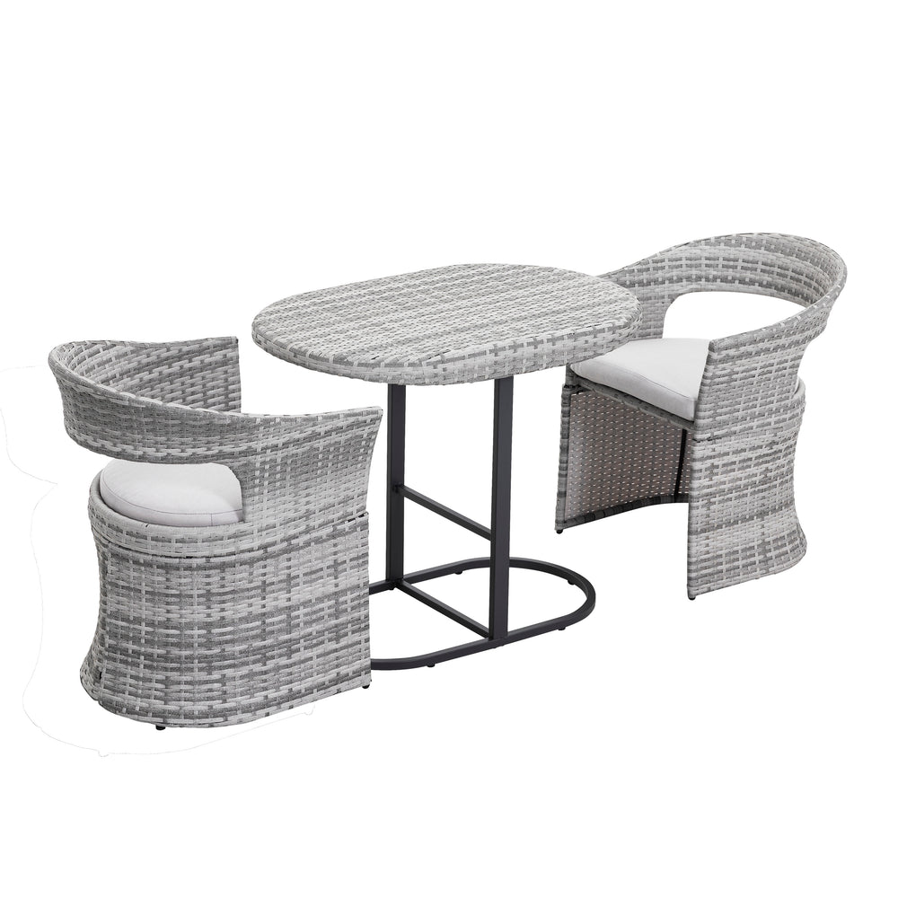 Outdoor Patio 3-Piece Bistro Set, 1 Rattan Iron Patio Table and 2 Rattan Chairs, Weather-Resistant Iron and Rattan Frame, for Indoors and Outdoors, with Soft Cushions, Gray