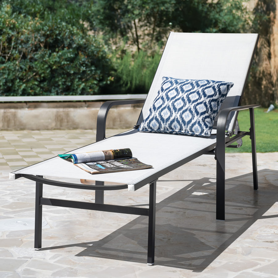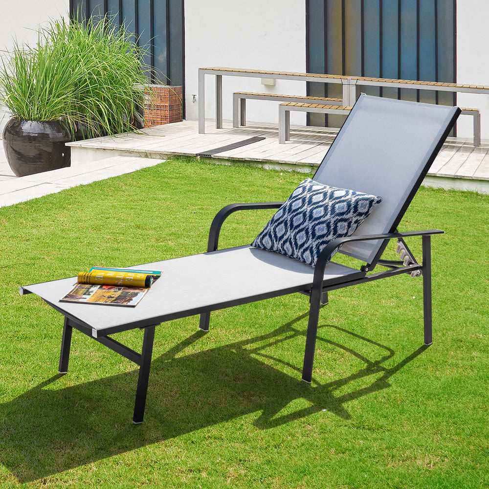 Breathable Textilene: This lounge chair boasts breathable, UV-resistant textilene fabric, ensuring comfort and protection under the sun. Enjoy relaxation with peace of mind while allowing airflow for added comfort.