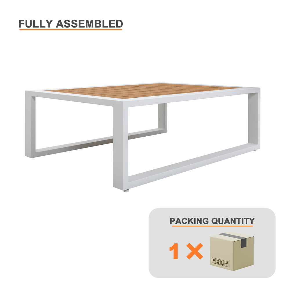 Outdoor Rectangle Coffee Table, All-aluminum Frame, Imitation Wood Tabletop