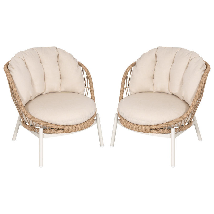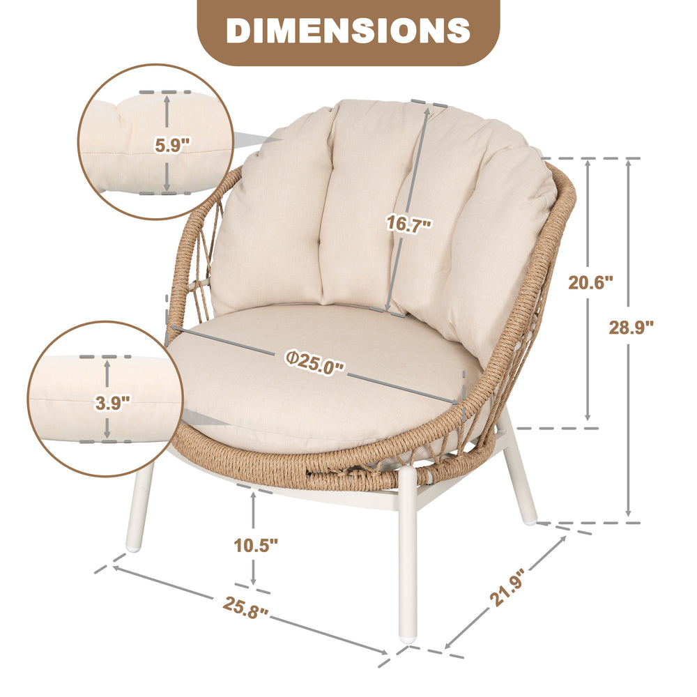 Outdoor Single Sofa Set of 2, Robust Twisted Rattan with Padded Cushions, Beige