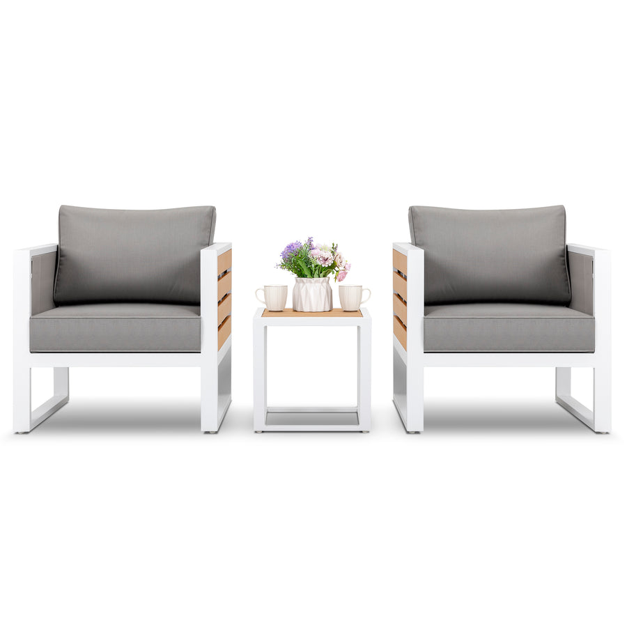 Outdoor Sofa Set, Side Table, 2 Armchairs, Cushions, Aluminum, Imitation Wood