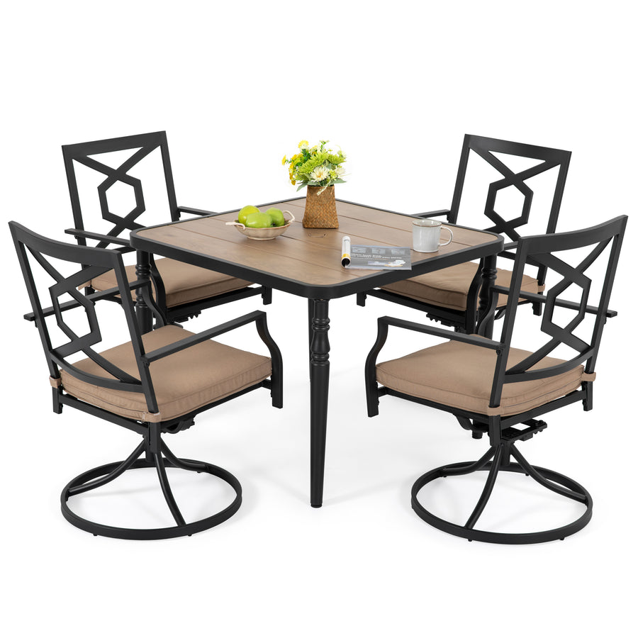- Umbrella Hole:?Designed for outdoor use, the table features a center umbrella hole, allowing easy installation of a patio umbrella (not included) for shade. Whether under the sun or in the light rain, it ensures a comfortable dining experience.