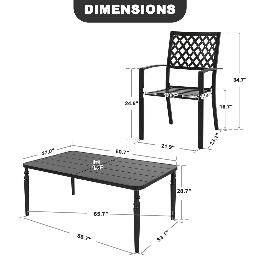 Imagine gathering around a beautifully crafted table with your loved ones, the Nuu Garden Outdoor 7-Piece Dining Set is designed to make the moment even more special. It features a pre-installed tabletop for quick assembly, adjustable legs for stable placement, and ergonomic and hollow chairs for long-lasting comfort. The sleek slat and weather-resistant frame ensure durable appearance. Rounded corners enhance safety, while antique turned legs add aesthetic appeal. A built-in umbrella hole provides convenient shade and stackable design ensures space-saving storage. All-in-one, you will experience unparalleled outdoor dining time.