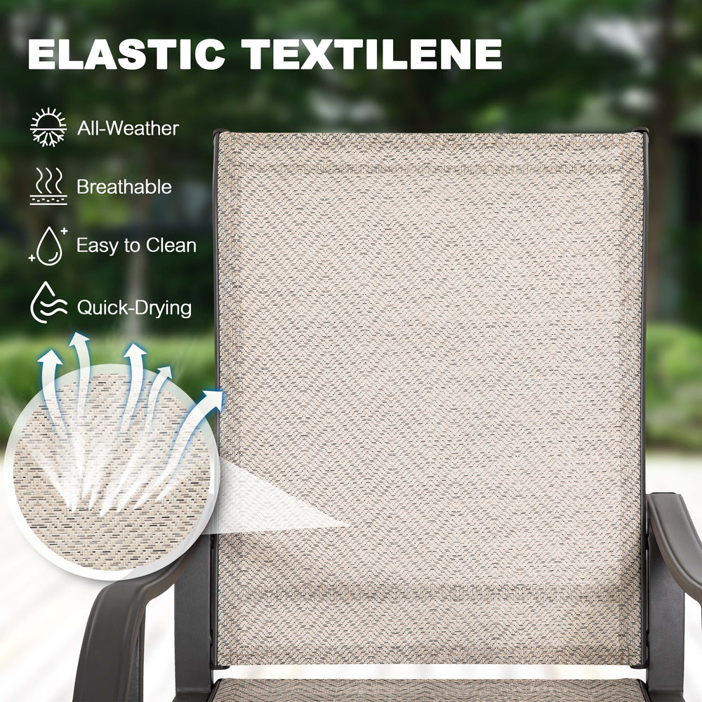 Breathable Textilene: The textilene?fabric, featuring exceptional rapid moisture-wicking, breathability, and UV and weather resistance, works in synergy to keep you refreshingly cool and comfortably dry.