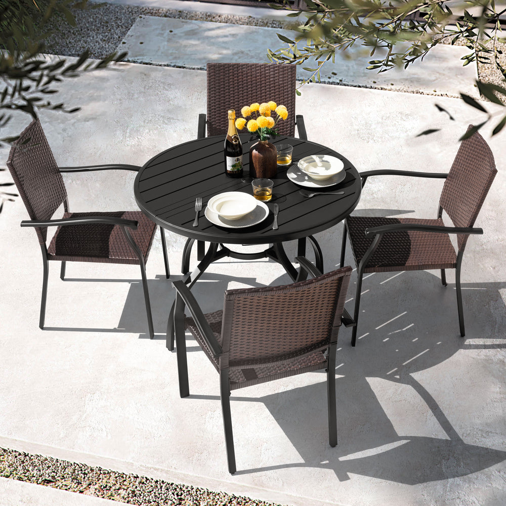 5-Piece Metal Patio Dining Set with Umbrella Hole, Stackable Design