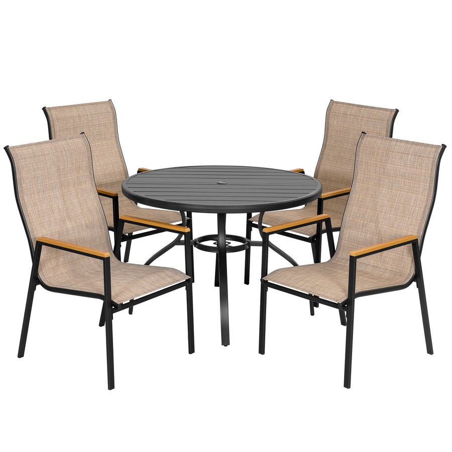 5-Piece Patio Dining Set with Umbrella Hole, Stackable Textilene Chairs