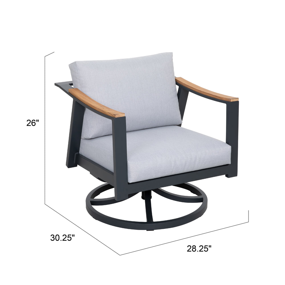 Outdoor 2-Piece Swivel Rocking Chairs with 4" Gray Zippered Cushions
