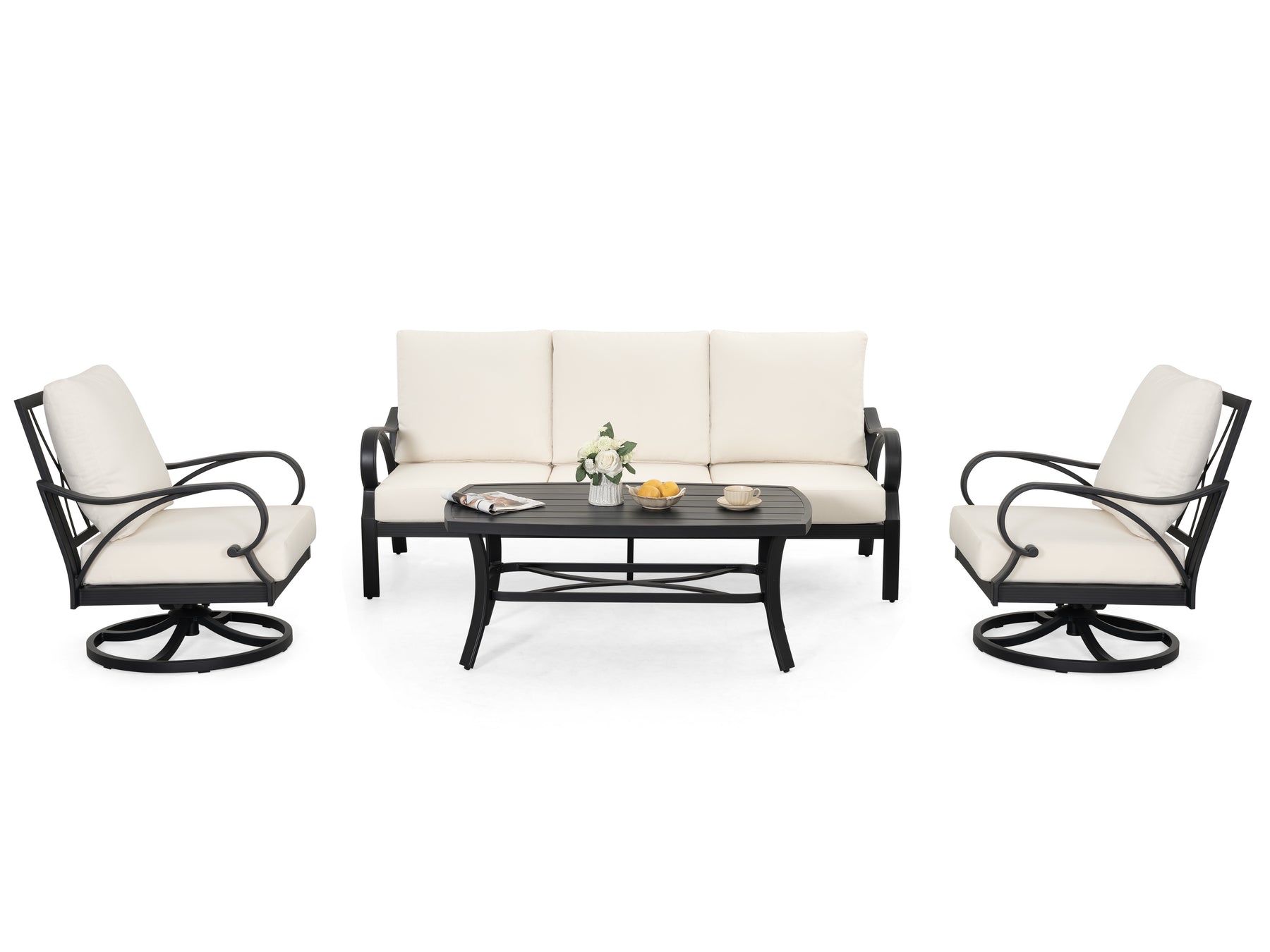 360° Smooth Swivel: The swivel function allows you to effortlessly turn and engage in conversations with family and friends from any direction, ensuring you’re always at the center of the action. Every twist of the patio chairs makes socializing seamless.