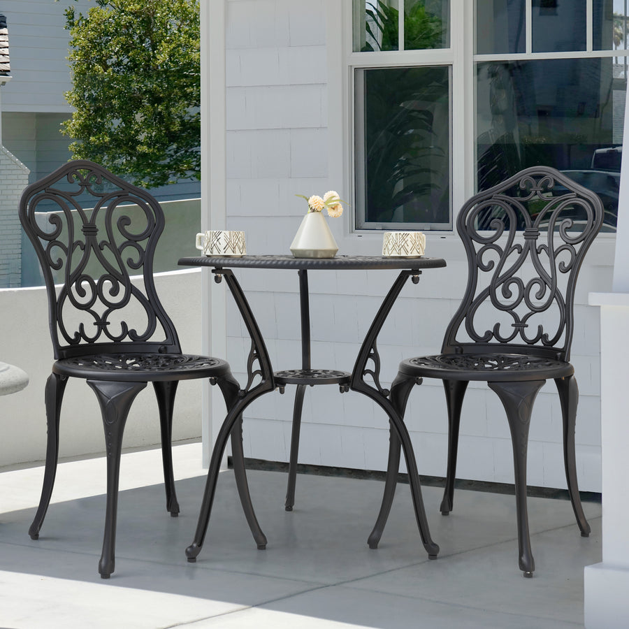 - Powder-Coated Frame: The frame made of high-quality cast aluminum with?powder?coating protects the bistro set from getting rusty from all weather and ensures its durability for years to come.