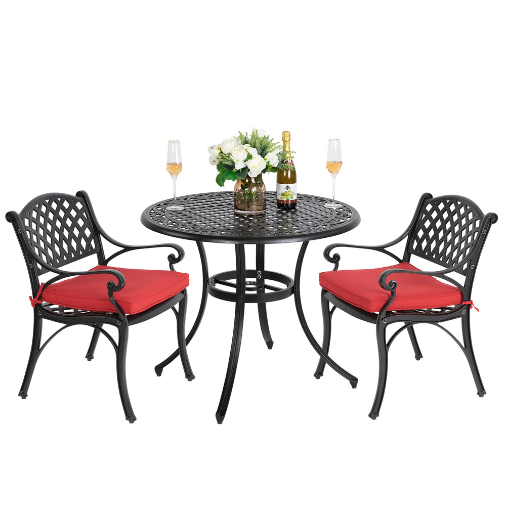 - Package Included: This Patio Bistro Set Includs 35.5 Inch Round Table and 2- Piece Armchairs / Table-35.5" Round x 28.5" H, Chair-23.75" L x 22" W x 32.5" H.