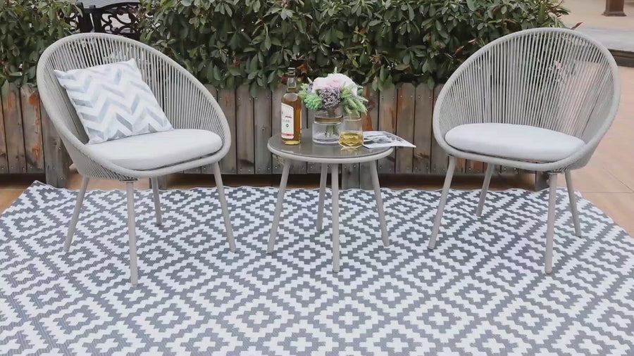 Patio 3-Piece Woven Rope Bistro Set with Light Gray Cushions, Gray
