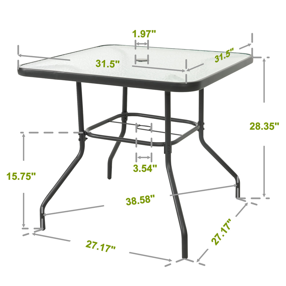 Weather Resistant: It's perfect for summer or winter, outdoors or indoors. With a sturdy metal frame and a thickened, easy-to-clean tempered glass tabletop, our umbrella table with holes is built to last in all weather conditions