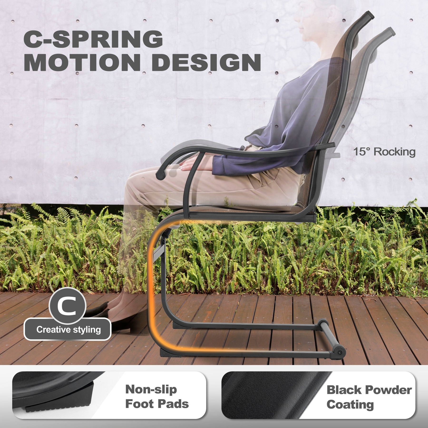 C-Spring Motion: Incorporating a C-Spring motion, the chair provides slight 15-degree rocking for a soothing and dynamic seating experience. The gentle rocking motion enhances relaxation, allowing you to enjoy moments of tranquility.