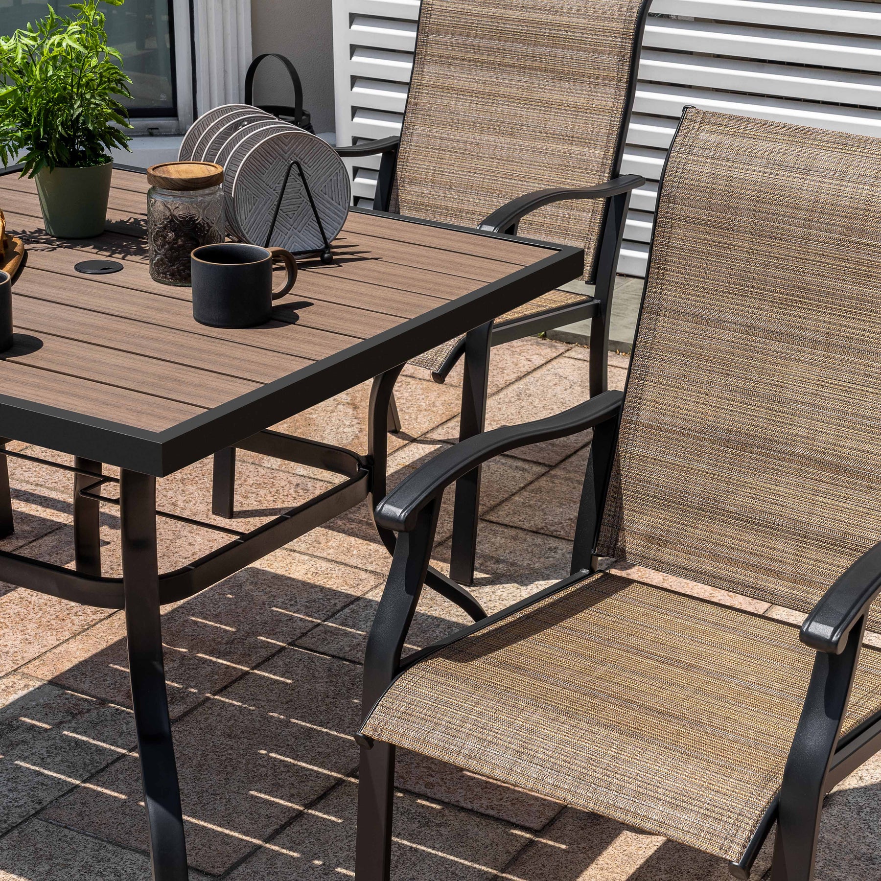 5-Piece Patio Outdoor Textilene and Metal Dining Set with Umbrella Hole
