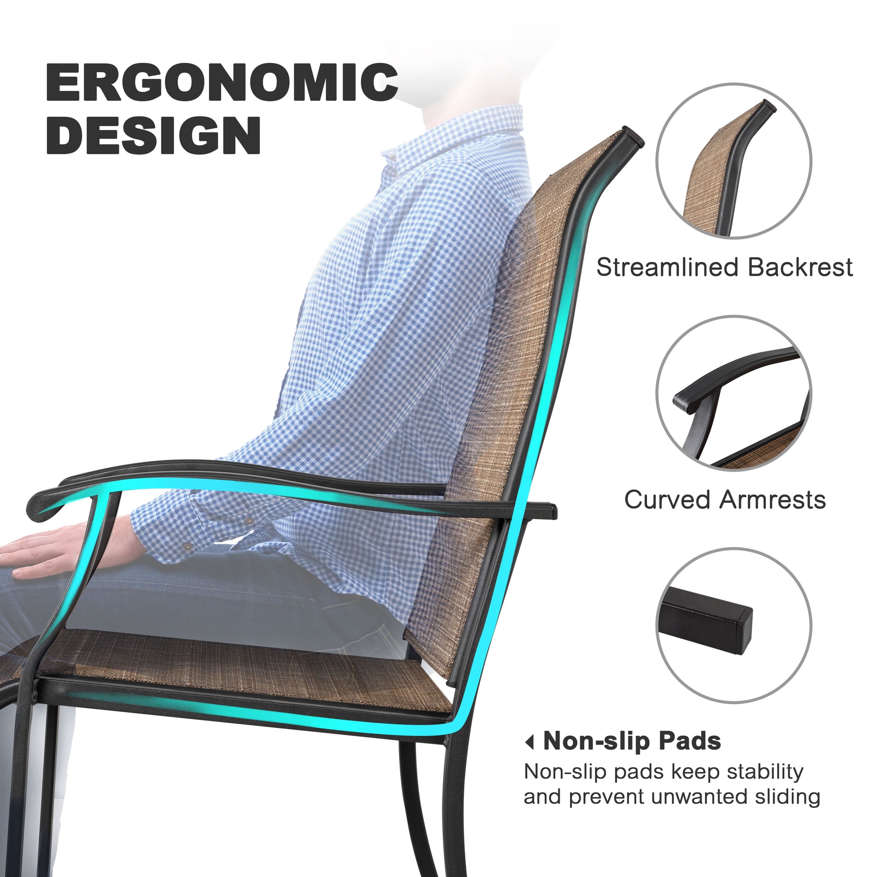 • Ergonomic Design: Smooth armrests and high backrest prop you up ergonomically for lounging at ease and enjoying leisure time when chatting outdoors.
