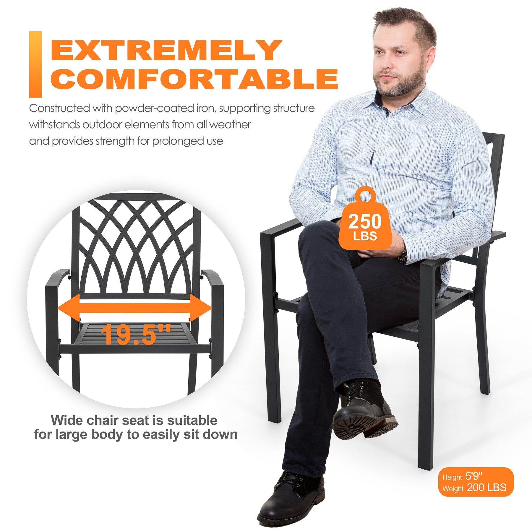 Space-saving Design: The stackable patio chairs are perfect for small spaces and easy portability. Non-slip pads?with wear resistance?to keep stability and prevent unwanted sliding and floor scratches.