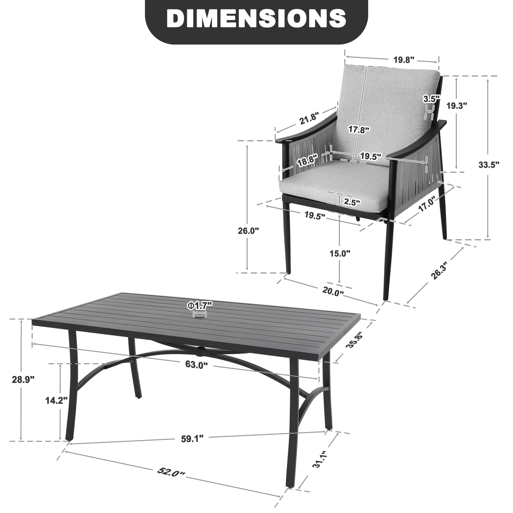 Umbrella Hole: Equipped with a built-in umbrella hole, this table accommodates most market umbrellas (not included), ensuring compatibility with a variety of sunshade options, and adding convenience and versatility.