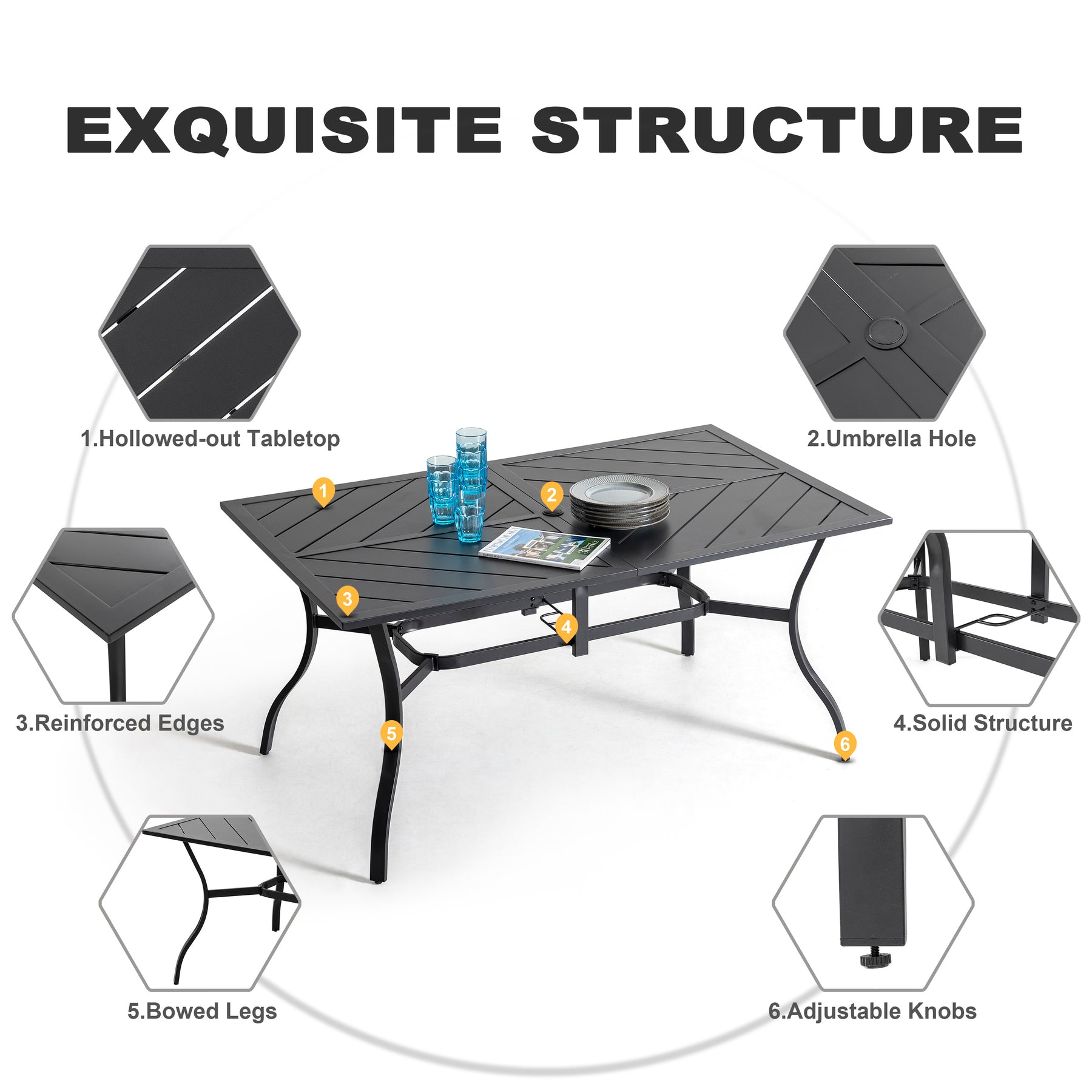 - Umbrella Hole: A 1.8'' umbrella hole on the tabletop fits most patio umbrellas (not included) in position for precise coverage to protect you from direct harmful sunlight or heavy rain.