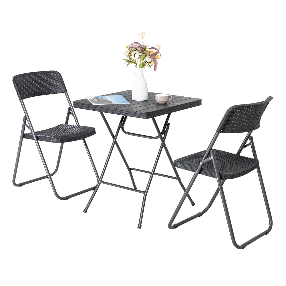 - Included: This Patio Bistro Set includes 1 square foldable patio table and 2 foldable patio chairs / Table-23.6*23.6*28.90 inches, Chair-19.90*17.70*32.70 inches,? 22.05 lbs.