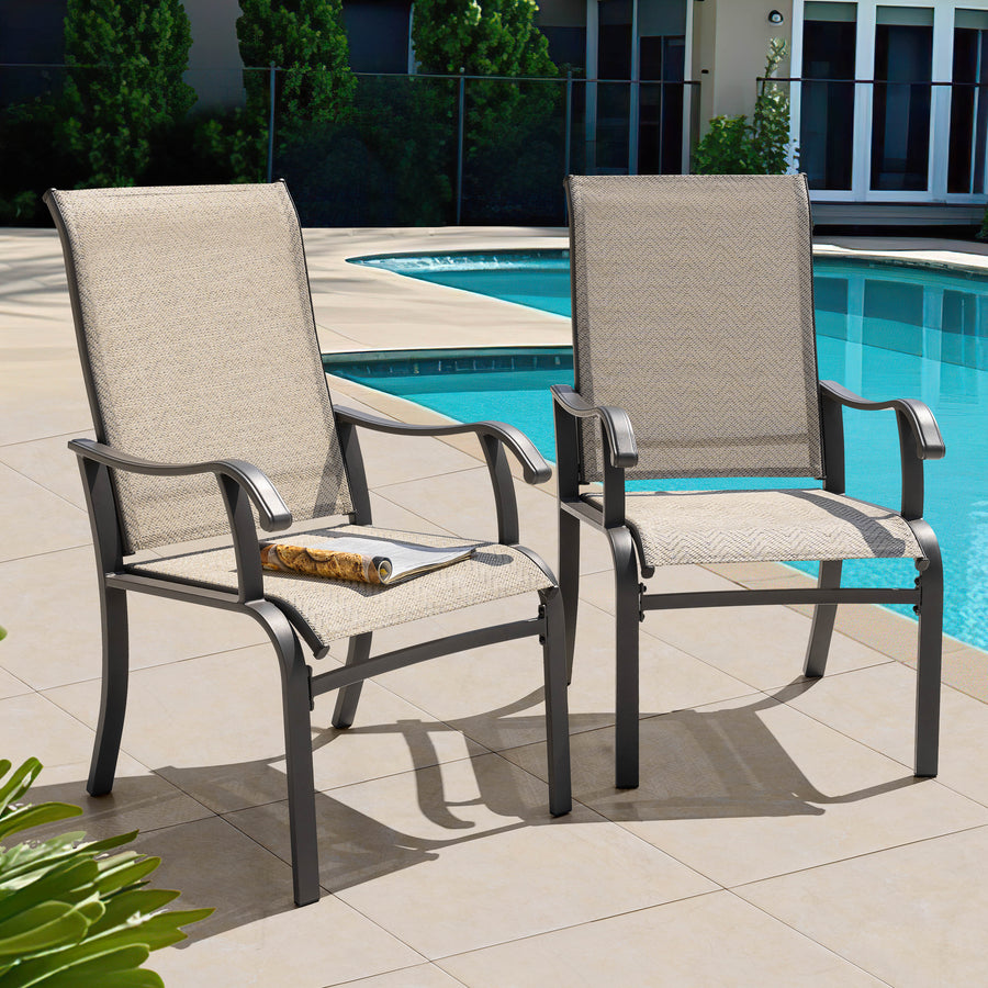 Engineered for those who value comfort and style,?the Nuu Garden Patio?Textilene Dining Chairs set is a must-have for outdoors.?The chairs feature bowed?legs for enhanced stability,?curved high backrest, wide seat and smooth armrests for ergonomic support,?allowing you to relax in ultimate comfort during long meals or chatting.?With non-slip pads keeping it steady and breathable,?weather-resistant textilene fabric providing coolness even in sweltering weather, and the rust-resistant frame guaranteeing?durability and long-lasting appeal, this set will bring you an unprecedented experience whether you're enjoying patio dinners or garden chats.