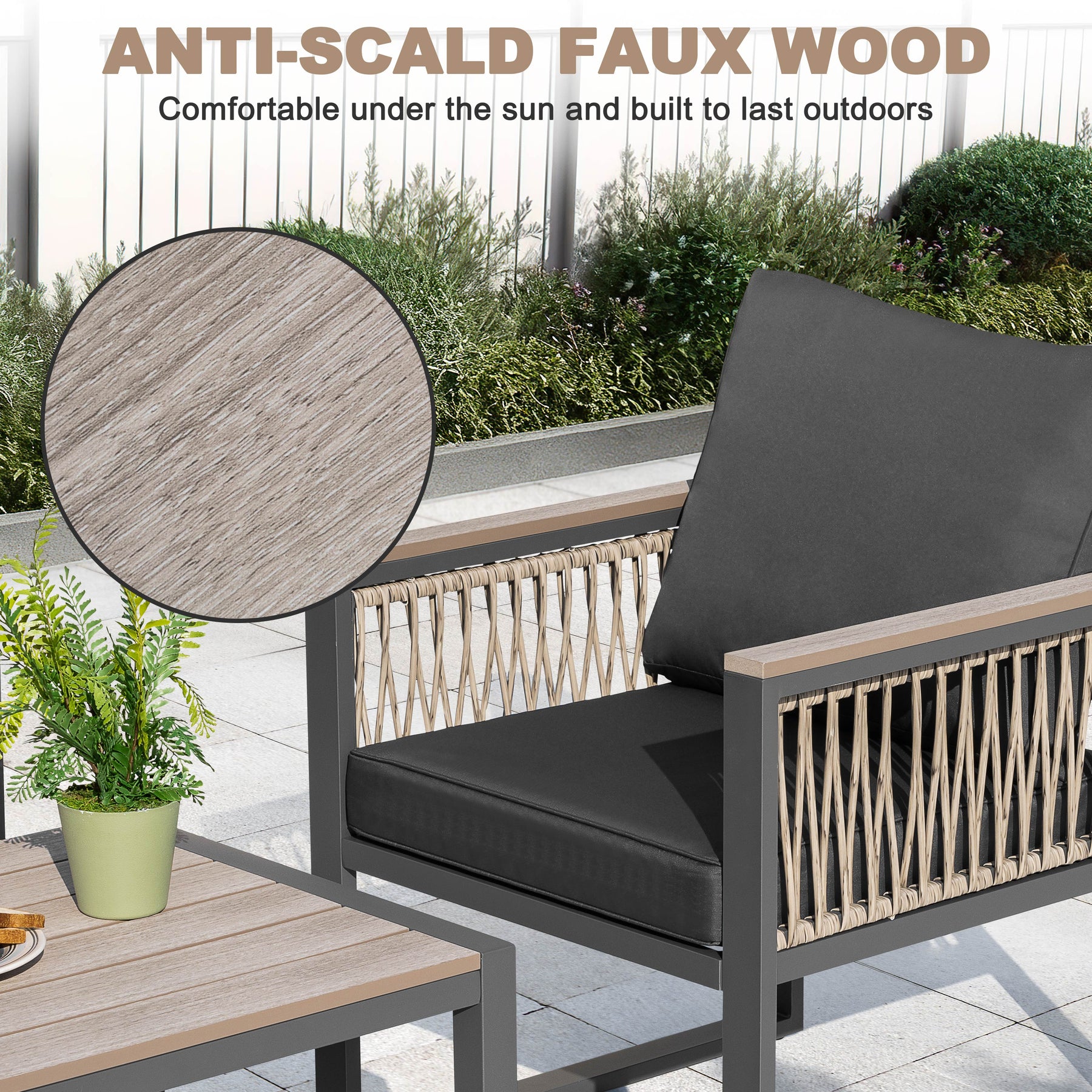 - Faux Wood Armrests: The armrests are made of faux wood that stays cool to the touch even under sunlight, preventing overheating. It combines the natural wood look with high durability, resisting cracking, fading for long-term outdoor use.