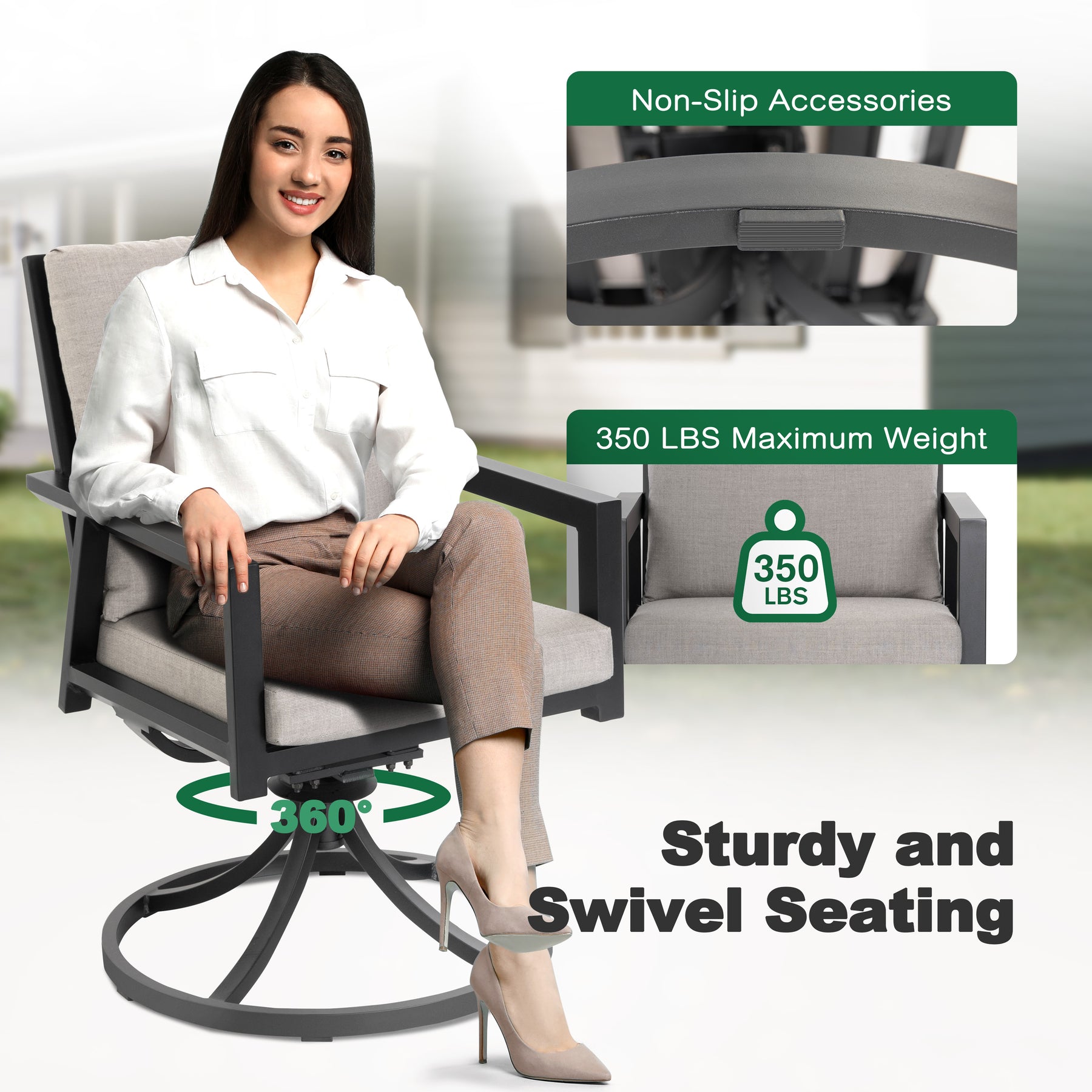 • 360?? Swivel: This set includes 2 swivel dining chairs with round bases and wide seats for stability. 360-degree rotation allows easy movement, promoting circulation and comfort during long periods. Ideal for leisure in any position.