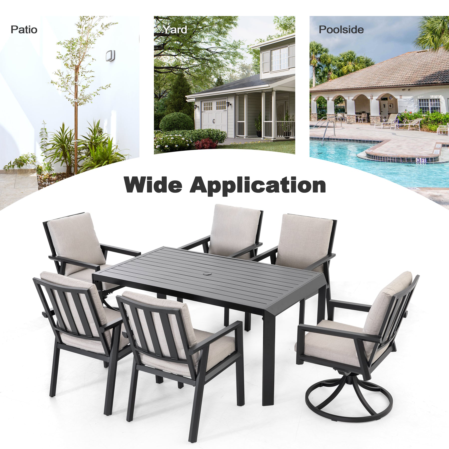 Outdoor 7-Piece Aluminum Dining Set with Soft Gray Cushion