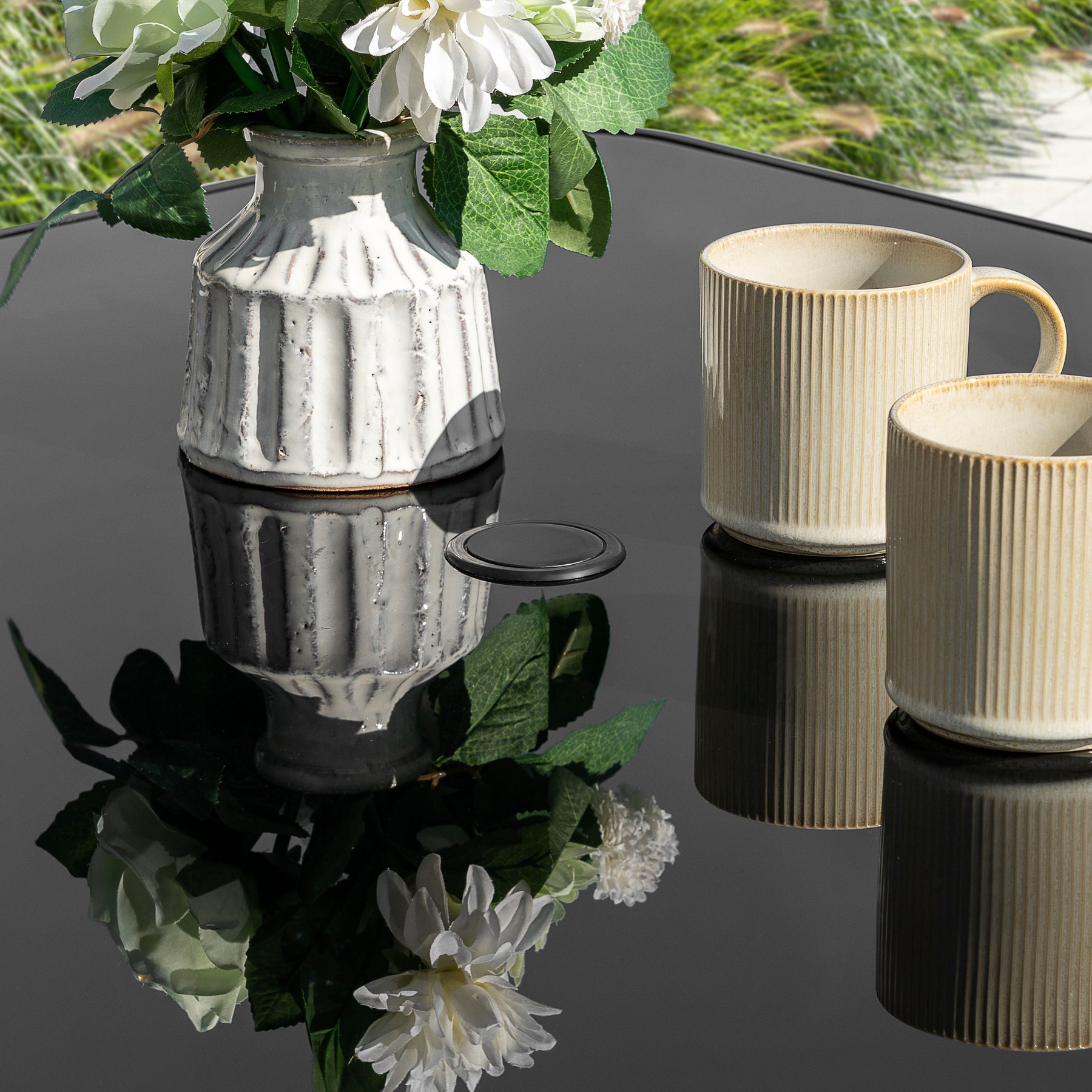 - Tempered Glass Tabletop: Our table features a durable tempered glass tabletop that resists scratches and impact, ensuring long-lasting beauty and functionality. It?¡¥s easy to clean, making it ideal for outdoor dining and entertaining.